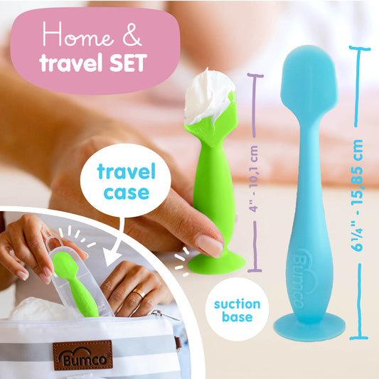 Bumco 2-Pack Mini Baby Bum Brush Bundle with Travel Case (Blue/Green)